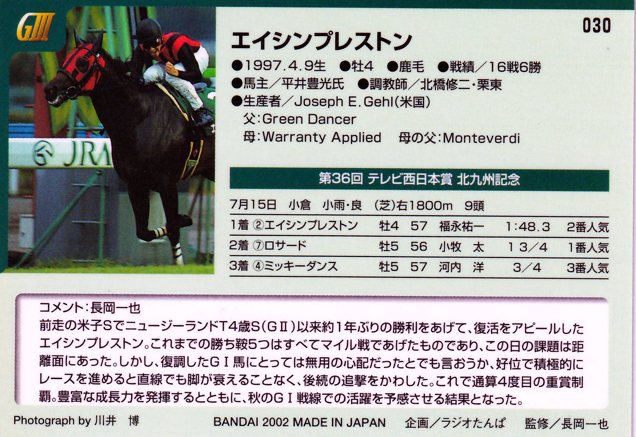 (福永祐一金箔サイン付)エイシンプレストン:第36回 北九州記念「サラブレッドカード 01年下半期」No.030