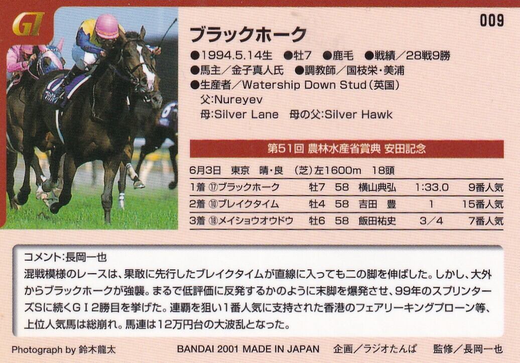 商品情報:サラブレッドカード 01上半期(ノーマル 金箔サイン入)