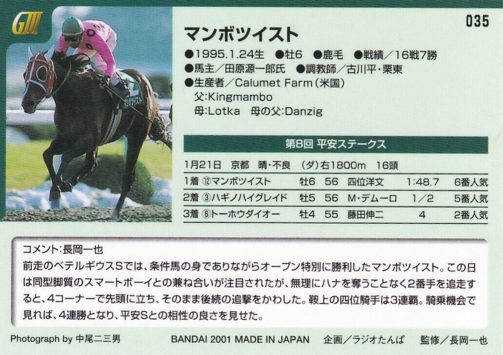 (四位洋文金箔サイン付)マンボツイスト:第8回 平安ステークス「サラブレッドカード 01年上半期」No.035