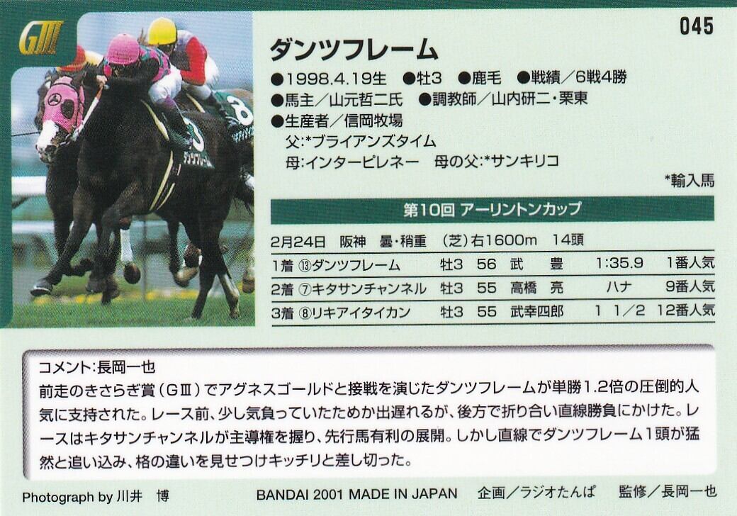 (武豊金箔サイン付)ダンツフレーム:第10回 アーリントンカップ「サラブレッドカード 01年上半期」No.045