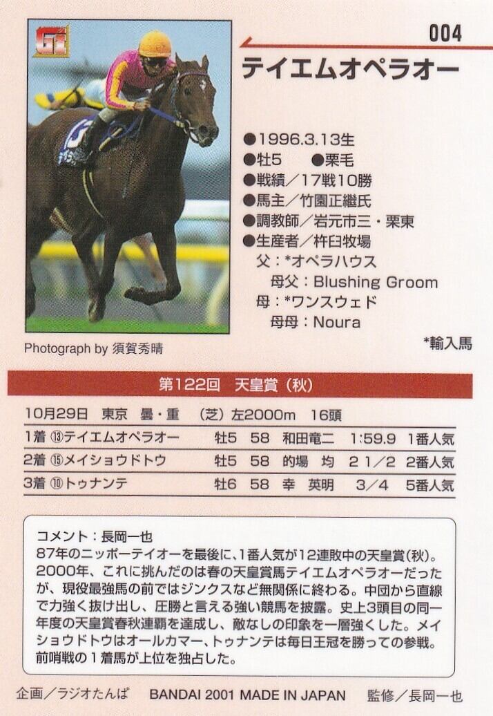 (和田竜二金箔サイン入)テイエムオペラオー:第122回 天皇賞(秋)「サラブレッドカード 00年下半期」No.004