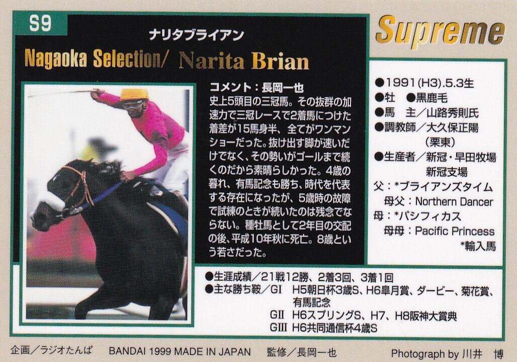 ナリタブライアン(シリアルナンバー入)「サラブレッドカード 99年上半期」S9