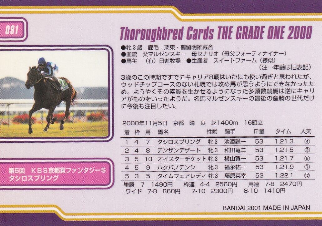 タシロスプリング:第5回 KBS京都賞ファンタジーS(金文字仕様)「THE GRADE ONE 2000」No.91